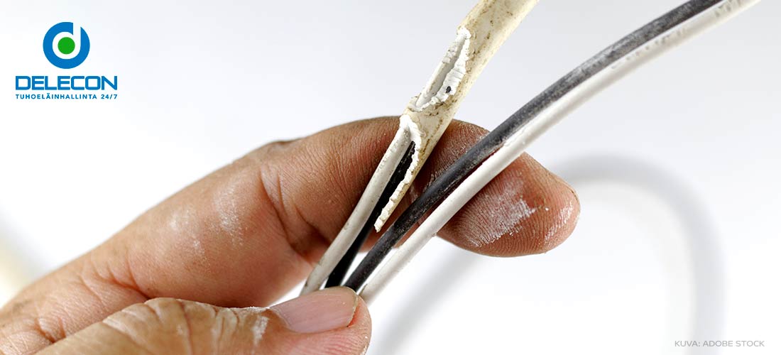 Jyrsijät, erityisesti hiiret, ovat loistavia kiipeilemään. Pidä huoli, etteivät ne pääse siirtymään sähköjohtoja pitkin rakennukseen. Suojaa johdot putkilla ja mahdollisuuksien mukaan asenna ne piilotetusti. Tämä estää johtojen jyrsimisen ja mahdolliset oikosulut sekä sähköpalot.
